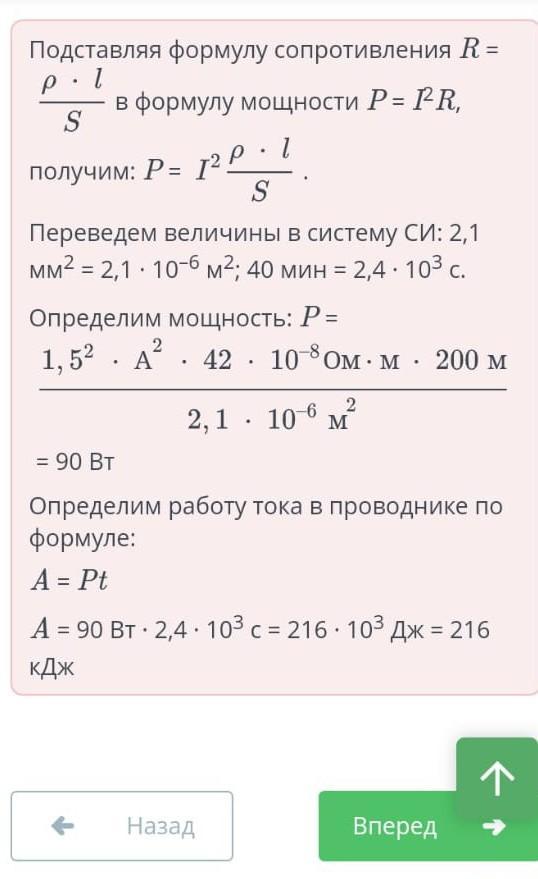 По никелиновому проводнику с поперечным сечением 2,1 мм2 и длиной провода 200 м течет ток 1,5 А. Определи мощность и работу электрического тока в этом проводнике за 40 минут. (ρ = 42 ∙ 10–8 Ом ∙ м) Верный ответ: B/м