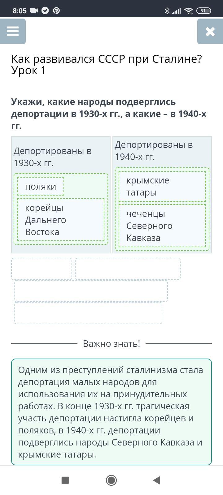 Укажи, какие народы подверглись депортации в 1930-х гг., а какие – в 1940-х гг.