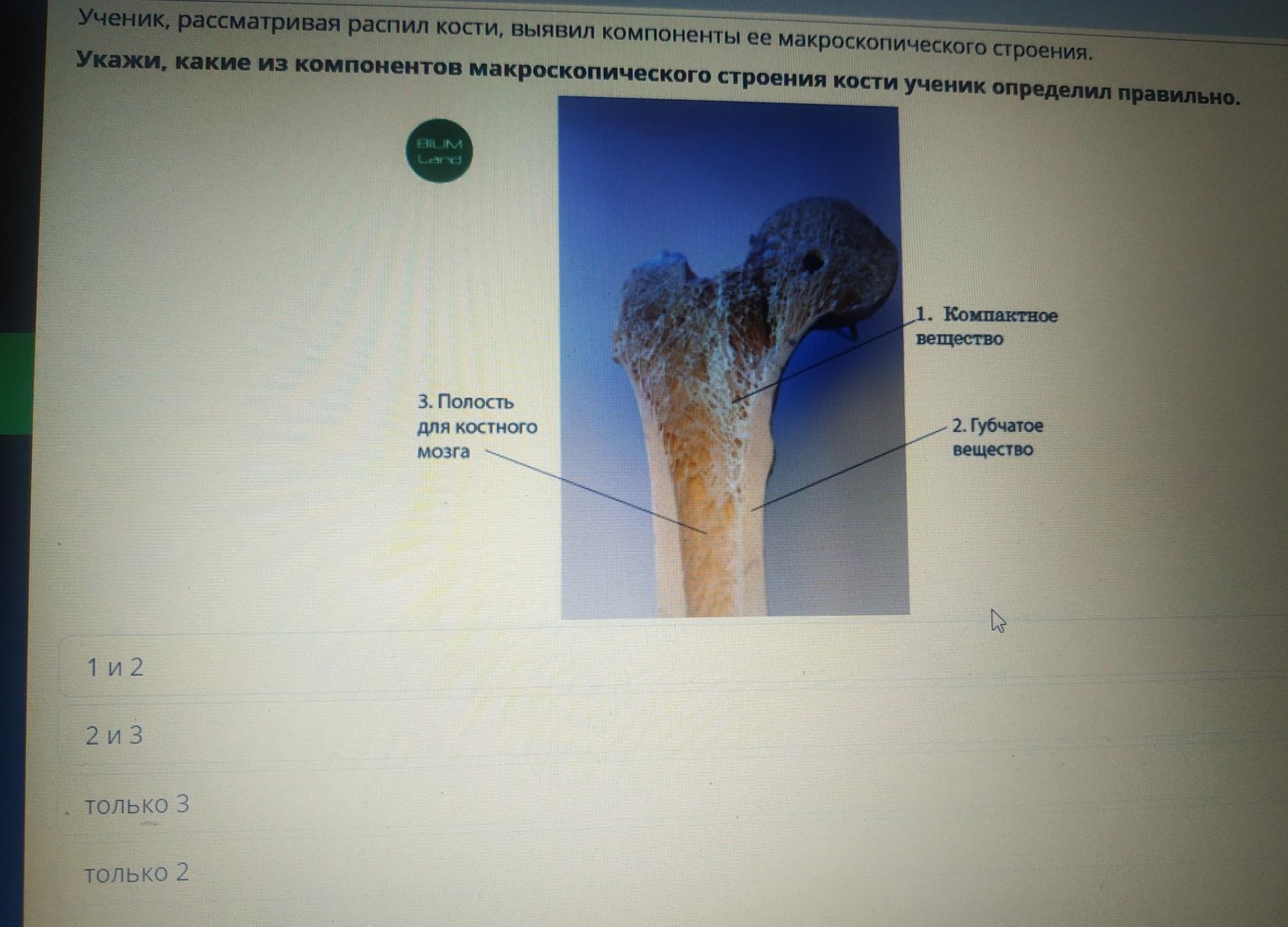 Ученик, рассматривая распил кости, Выявил компоненты ее макроскопического строения. Укажи, какие из компонентов макроскопического строения кости ученик определил правильно.