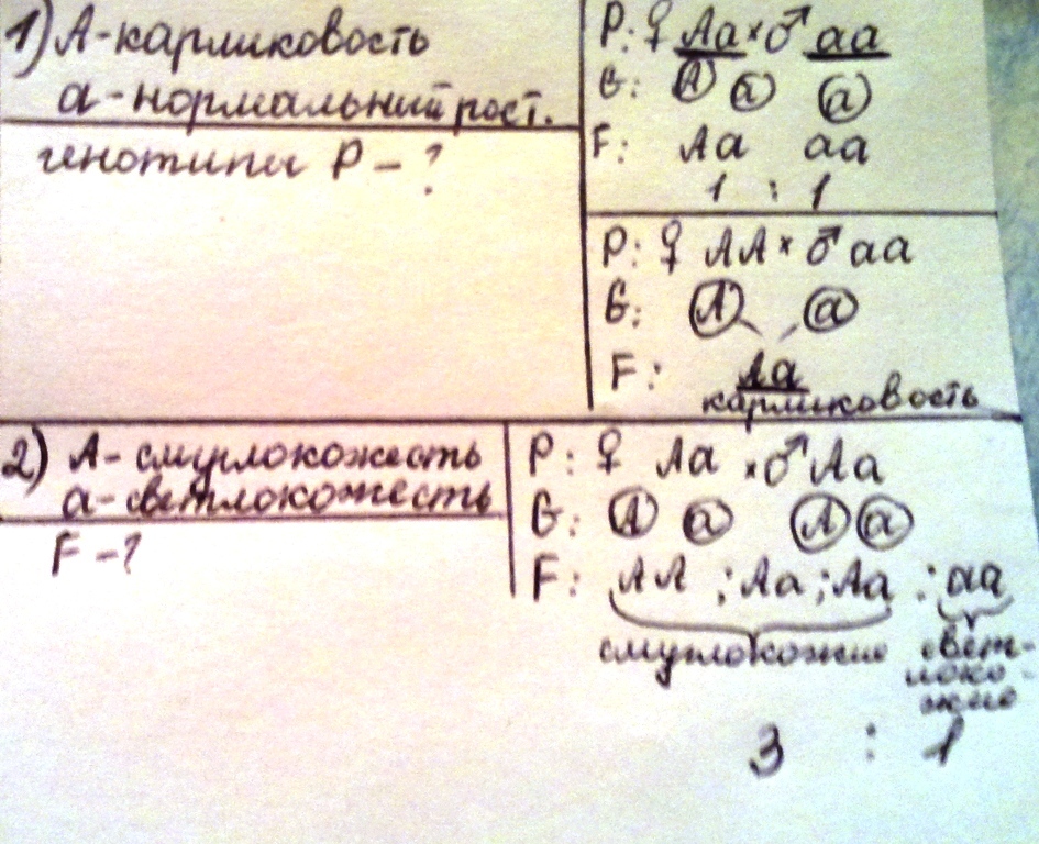 1) У пшеницы ген карликовости доминирует над геном нормального роста. Каковы генотипы исходных форм, если в потомстве получилось расщепление по этому признаку в соотношении 1:1. При каких генотипах и фенотипах родительских форм получится фенотипически однородное потомство?