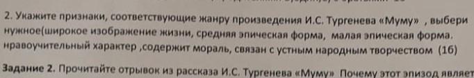 Укажите признаки соответствующие жанру произведение И.С Тунгрева Муму выбери нужное( широкое изображение жизни, средняя эпическая форма, малая эпическая форма. Нравоучительный характер, содержит мораль, связан с устным народным творчеством, ДАЮ 50 БАЛЛОВ ПОМОГИТЕ УМОЛЯЮ ВАС