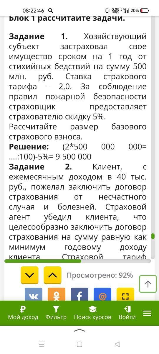 Задание 1. Хозяйствующий субъект застраховал свое имущество сроком на 1