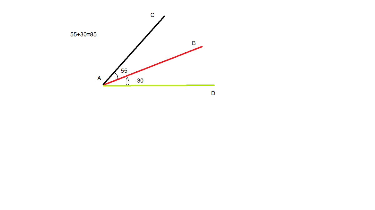 1) луч AB-общая сторона углов : угол BAC=55 градусов и угол DAB=30градусам. Начерти эти углы и определи величину угла DAC. Найди два решения.