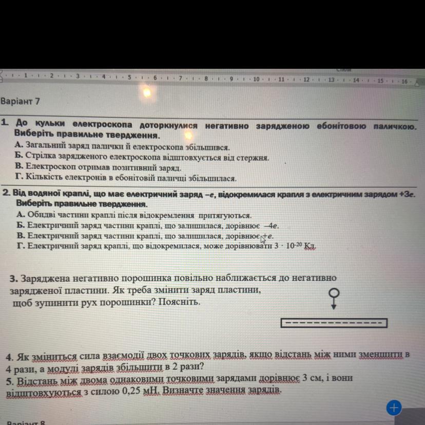 До кульки електроскопа доторкнулися негативно зарядженою ебонітовою паличкою.
