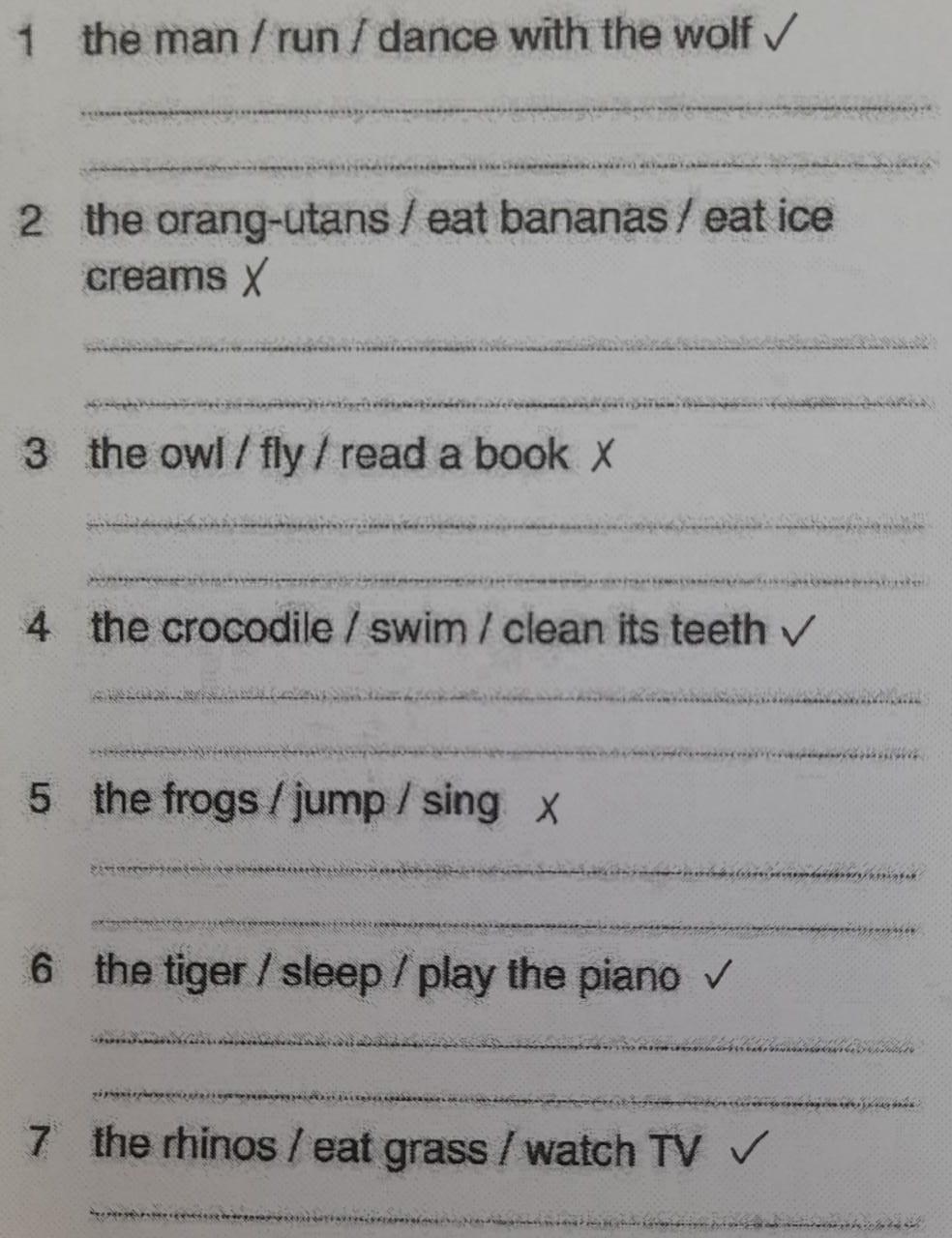 Очень странное задание, потому что перевод предложений получается следующим: «Тигр спит и играет на пианино». Смысла ноль в предложении. Но я сделала по заданию. С точки зрения грамматики все верно.