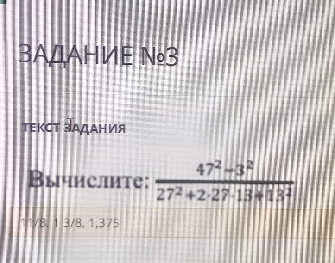 (47²-3²)/(27²+2*27*13+13²)=(47-3)*(47+3)/(27+13)²=44*50/50²=44/50=0.88