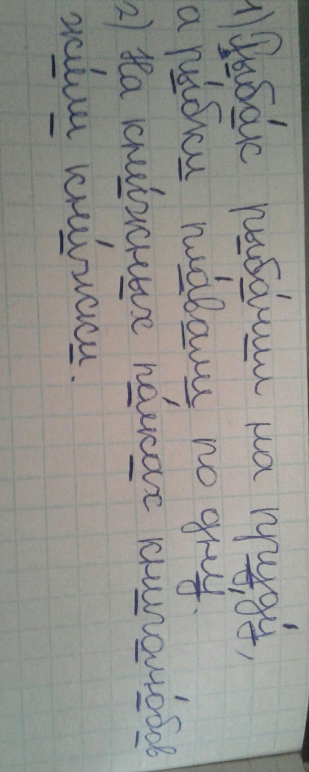 Помогите пожалуйста! Спишите предложения. Подчеркните в словах буквы, обозначающие гласные звуки. Поставьте ударения. Вопрос: 1) Рыбак рыбачил на пруду, а рыбки плавали по дну. 2) На книжных полках книголюбов жили книжки.