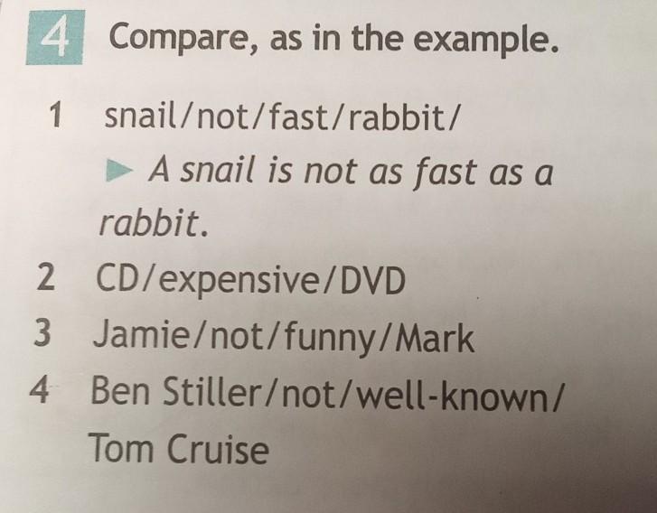 2 CD/expensive/DVD 3 Jamie/not/funny/Mark 4 Ben Stiller/not/well-known/ Tom Cruise