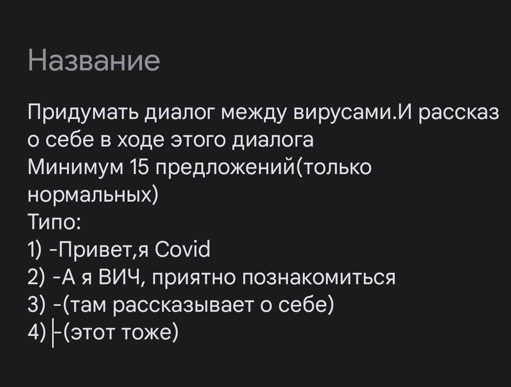 5)-Ого...Ясно,- удивился ВИЧ- я думал вирусы только вред несут в этот мир.