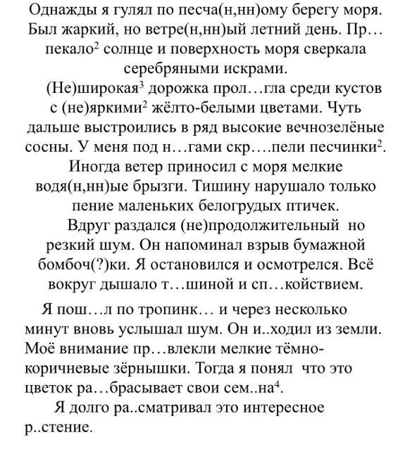 Объяснение:Песчаному(берегу)-подчёркиваем букву н,ветреный(день)-подчёркиваем букву н,припекало-выделяем приставку при,неширокая(дорожка)-выделяем не приставкой,легла-подчёркиваем букву е, с неяркими(цветами)-не выделяем приставкой,под ногами-подчёркиваем букву о,скрипели-подчёркиваем букву и,водяные(брызги)-подчёркиваем букву н,непродолжительный-выделяем не приставкой,бабочки-подчёркиваем чк,тишиной-подчёркиваем и,спокойствием подчёркиваем букву о,пошёл-подчёркиваем букву ё, (по) тропинке-подчёркиваем и выделяем букву е окончанием,исходил-выделяем приставку ис и подчёркиваем букву с,привлекли-выделяем приставку при,разбрасывают-выделяем приставку раз ,и выделяем букву з подчёркиваем одной чертой ,а букву б двумя чертами,семена-подчёркиваем букву е ,и ен выделяем суффиксом.рассматривал-рас выделяем приставкой ,и вторую с подчёркиваем двумя чертами,а первую одной,растение-выделяем корень раст,и подчёркиваем стдвумя чертами,а а одной.