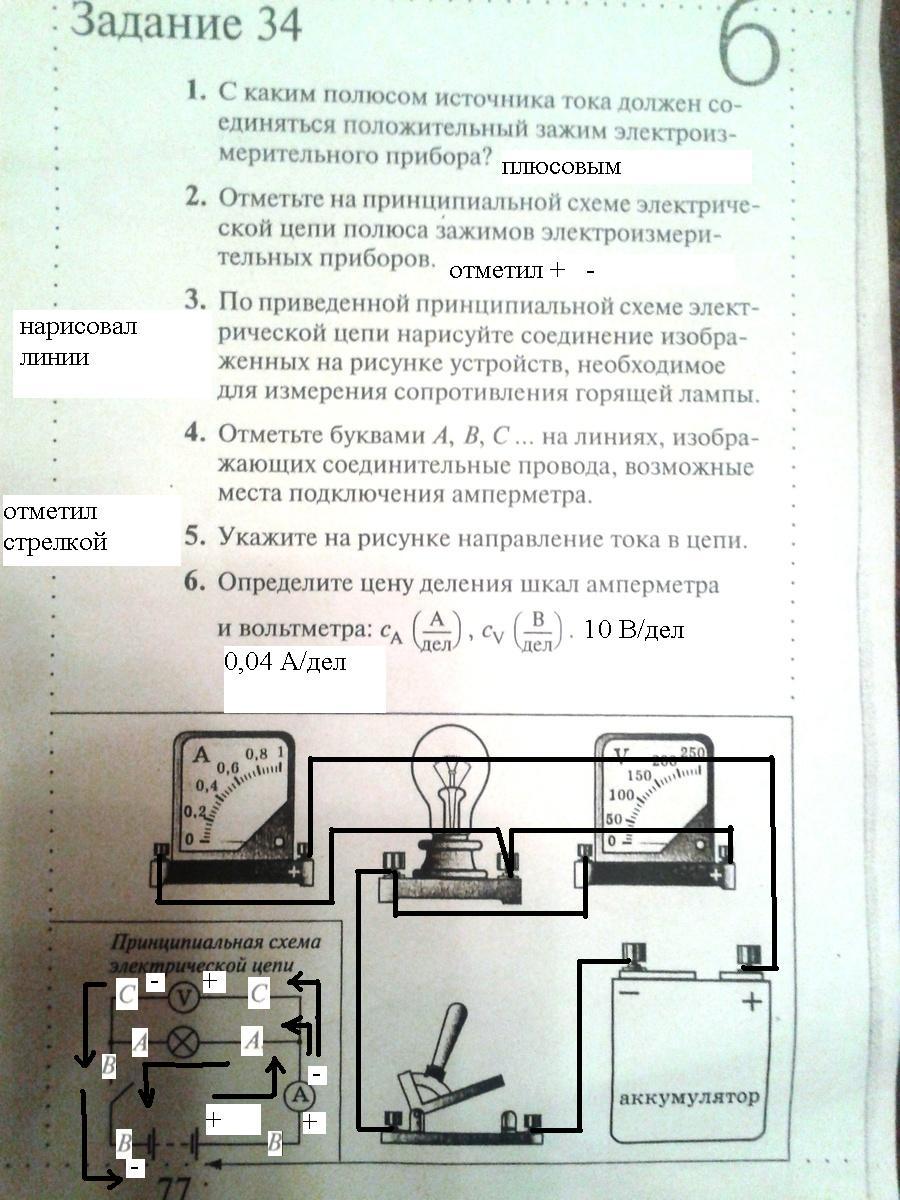 3)к аккумулятору подключаешь ключ, к лампочке последовательно амперметр, параллельно вольтметр, нахождение ключа не имеет ни какой разницы