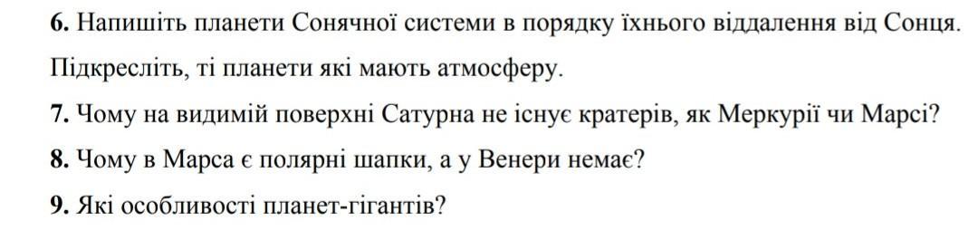 6. Меркурий, Венера, Земля, Марс, Юпитер, Сатурн, Уран, Нептун.