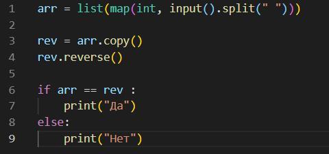випадку, якщо список читається однаково як зліва направо, так і навпаки. У