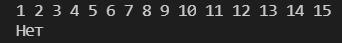 список (15 елементів) у користувача та виводить повідомлення «Так» у