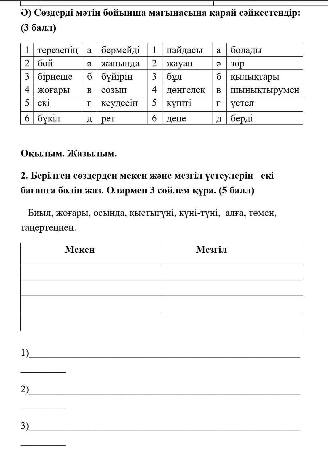 Сөйлем:1 .бір апта бойы күні -түні жаңбыр жауды2.Мен биылғы жылы жұмысқа барамын.