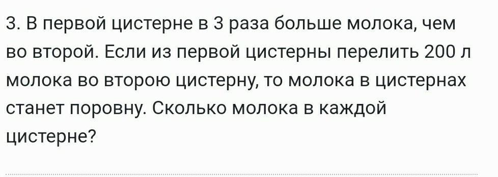 3x = 3 · 200 = 600 – литров молока в первой цистерне