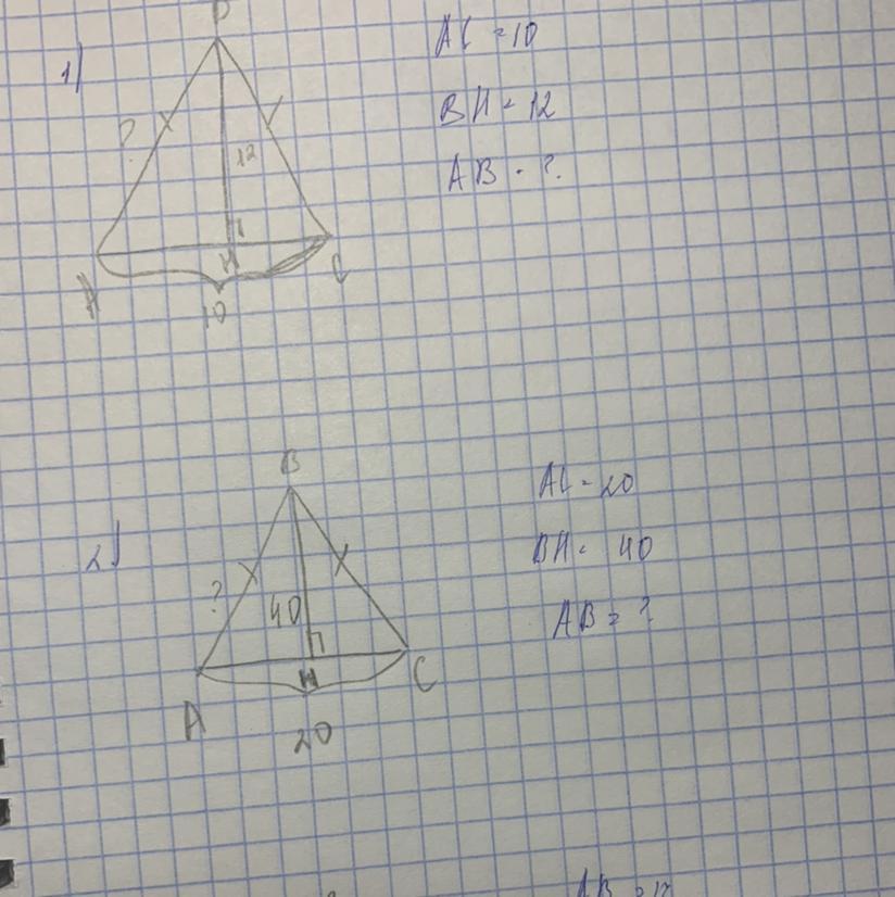 АВ^2=ВН^2+АН^2=12^2+5^2=