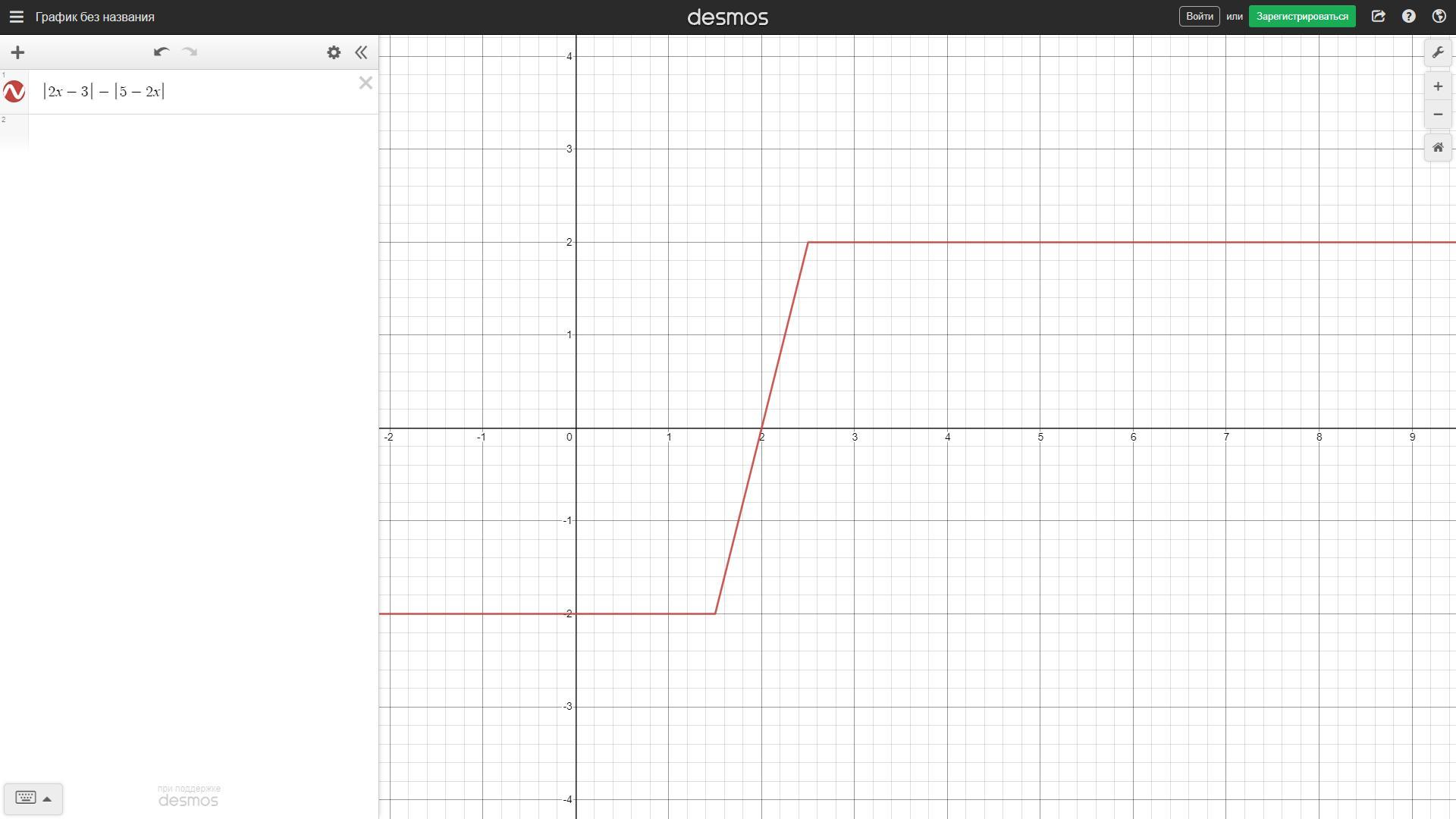 y = Ι2x-3Ι - Ι5 - 2xΙ и найдём точки пересечения графика с прямой
