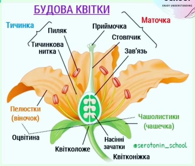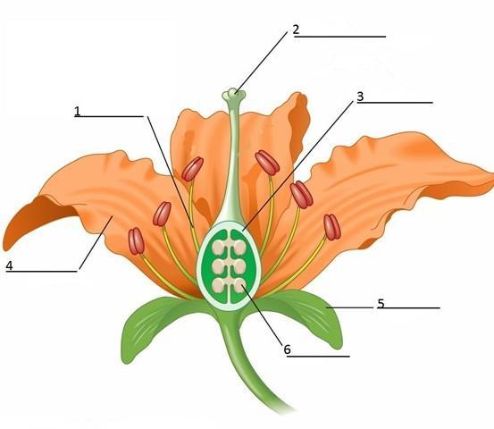 Підпишіть на малюнку структури квітки (у бланку відповідей біля порядкового номеру напишіть назву структури).