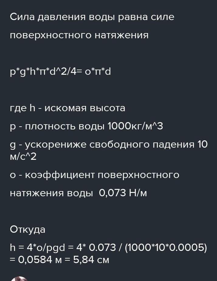 В дне сосуда имеется маленькое отверстие диаметром 0,5 мм. До уровня какой высоты можно налить воду в сосуд, чтобы она не вытекала через отверстие?
