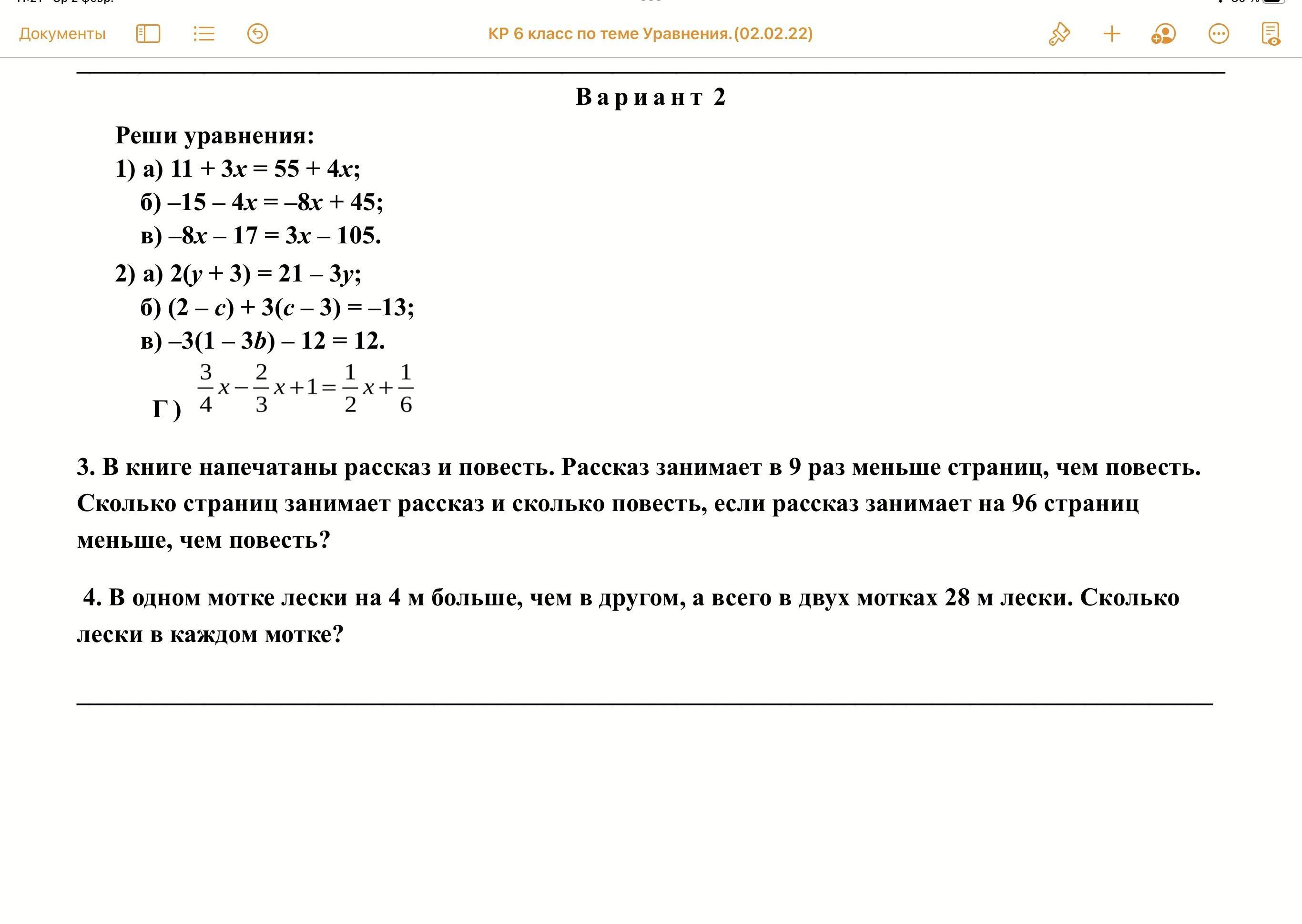 г) 3/4х - 2/3х + 1 = 1/2х + 1/6