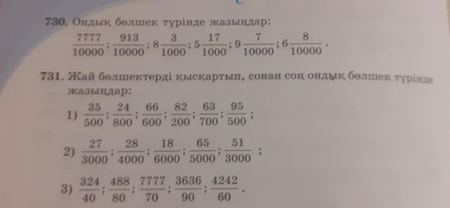 № 731 бул жерде жөн гана үстүнкү санды төмөнкү санга бөлүңүз