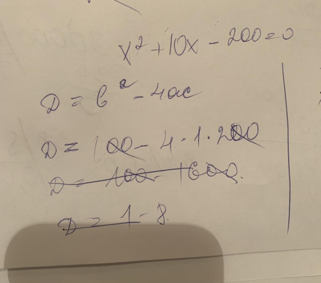 900 под корнем равен 30, далее -b +30/2×a= -10 +30/2=-20/2=-10 , b равен 10,но по формуле он должен быть с минусом,плюс 30 и в знаменателе(то,что снизу) двойку умножаете на первый коэффицент,который равен 1 , и делите -10+30 на 2