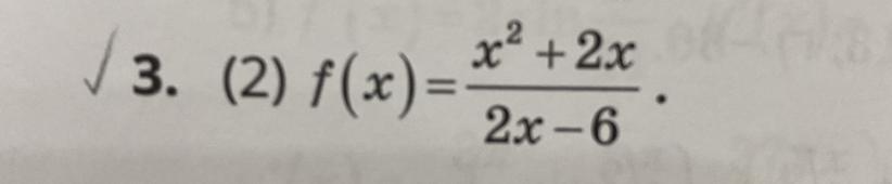 f(x)=\dfrac{x^2+2x}{2x-6}\ \ \ ,\qquad \boxed{\ \Big(\dfrac{u}{v}\Big)'=\dfrac{u'v-uv'}{v^2}\ }\\\\\\f'(x)=\dfrac{(2x+2)(2x-6)-2\, (x^2+2x)}{(2x-6)^2}=\dfrac{2x^2-8x-12-2x^2-4x}{(2x-6)^2}=\\\\\\=\dfrac{-12x-12}{(2x-6)^2}=-\dfrac{12\, (x+1)}{4\, (x-3)^2}=-\dfrac{3\, (x+1)}{(x-3)^2}