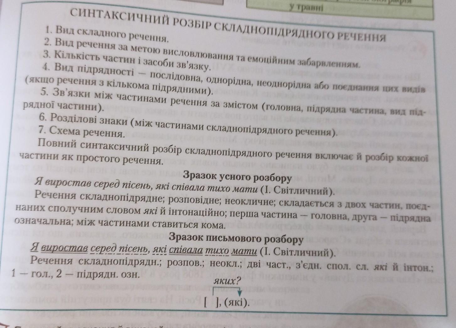 1.Всі одразу помітпомітилиили, що літо вже минуло, що настала осінь із мряками , розбитими дорогами, холодними вітрами. 2.Правди в брехні не розмішуй, бо на світі той наймудріший, хто найбільше любить життя. 3.Дітям здавалось, що вже вечір і що зараз прийде мама. 4. Коли ми йшли удвох з тобою вузькою стежкою по полю, я гладив золоте колосся як гладить милому волосся щаслива, ніжна наречена.