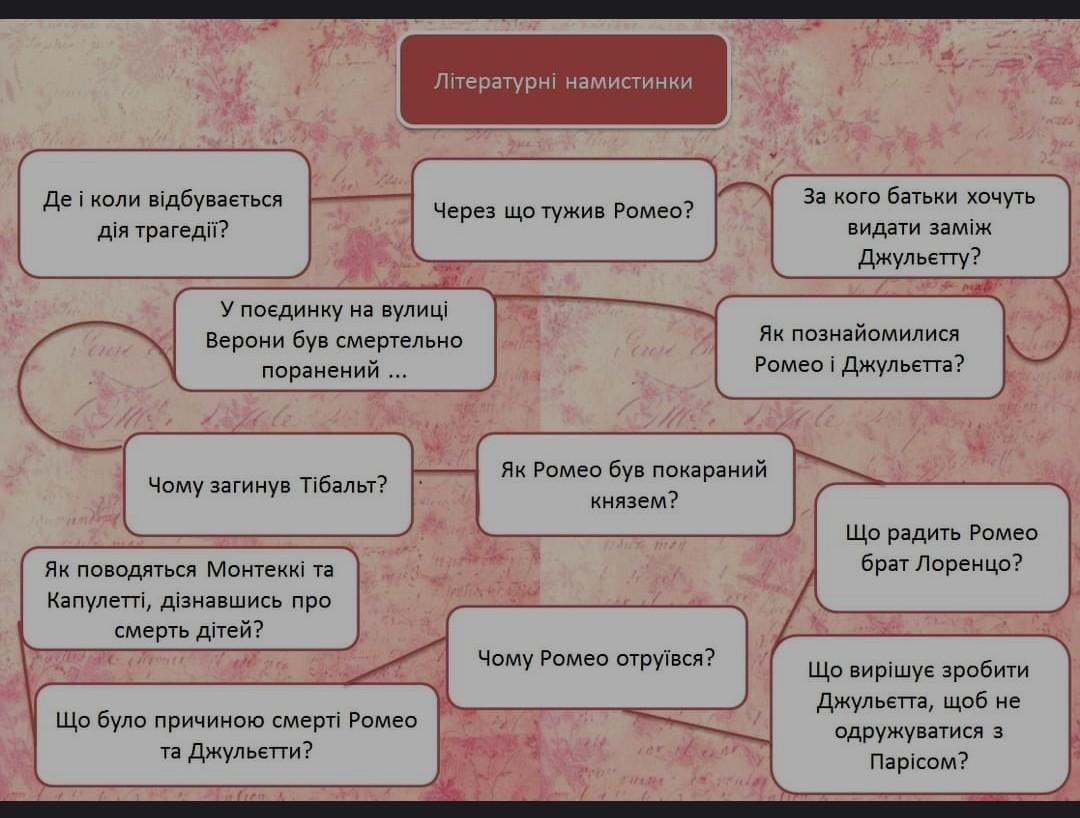 11) Що було причиною смерті Ромео та Джульетти? (Ворожнеча між родами Монтеккі та Капулетті)