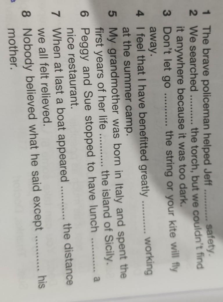 Fill in the correct preposition from the list. One of the prepositions is used twice.