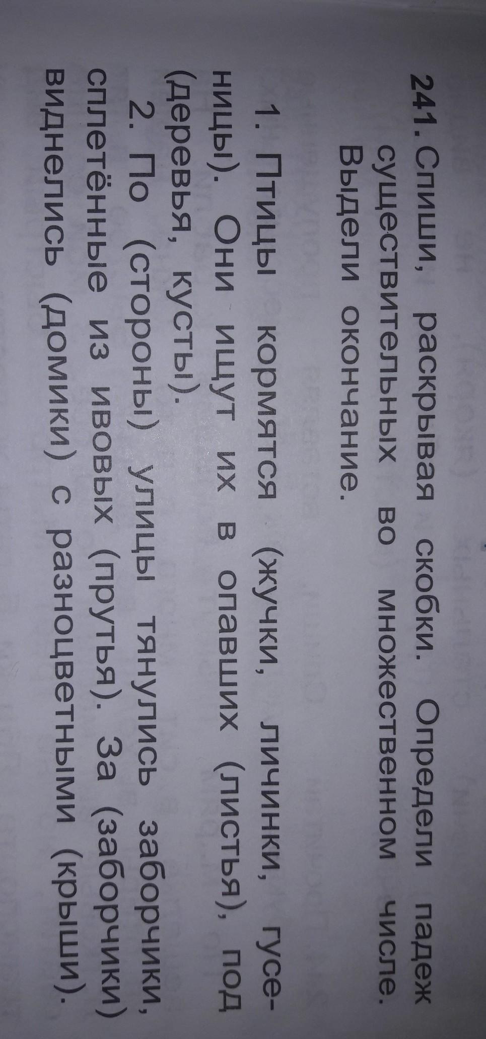 Спиши, раскрывая скобки . Определи падеж существительных во множественном числе. Выдели окончание.