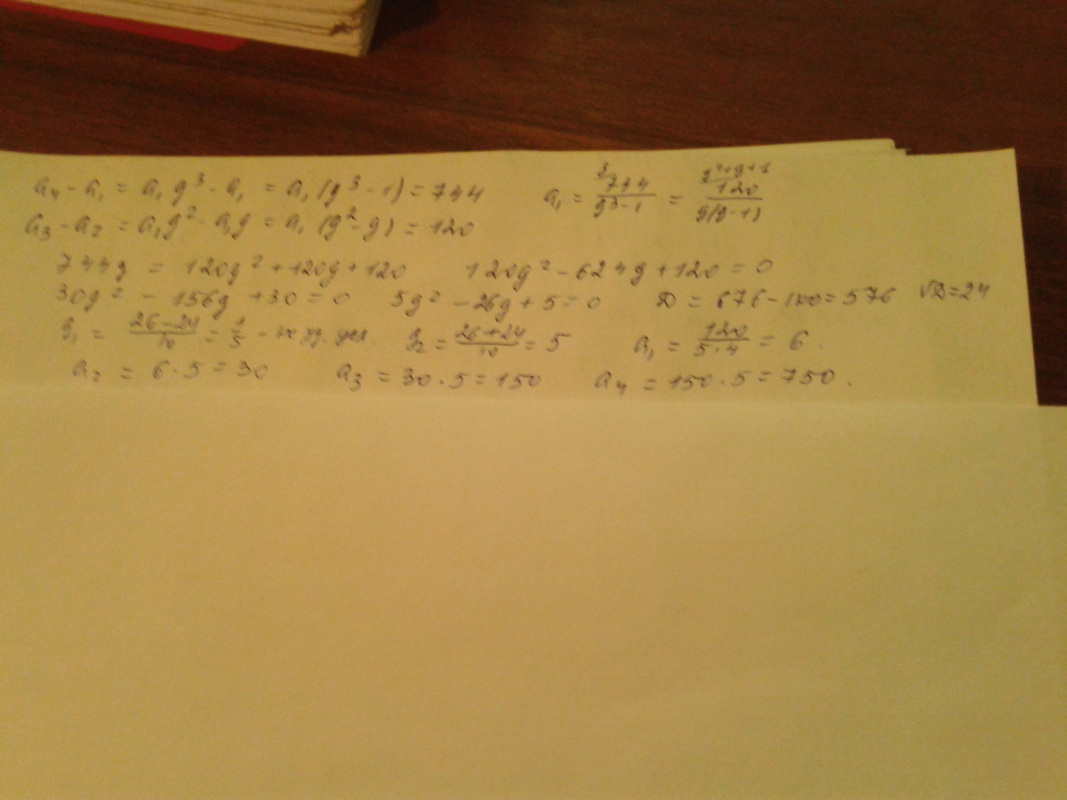 Найдите четыре числа,составляющие возрастающую геометрическую прогрессию,если известно,что разность между четвёртым и первым членами равна 744,а разность третьим и вторым членами равна 120