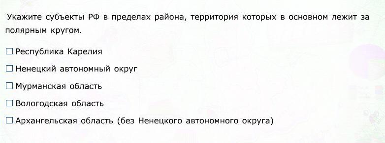 укажите субъекты РФ в пределах района,территория которых в основном лежит за полярным кругом