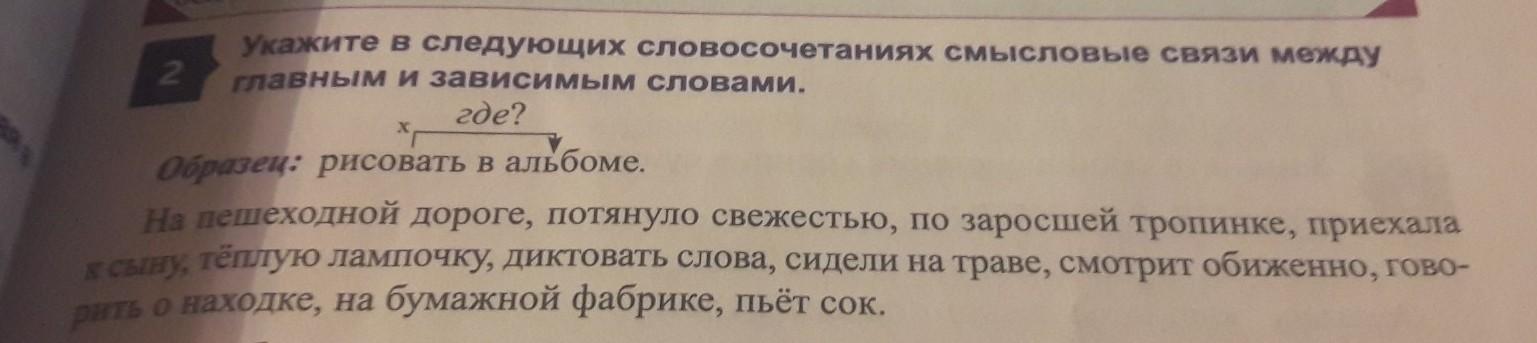 На (чём?) пешеходной дороге, потянуло (чем?) свежестью, по (чём) заросшей тропинке, приехала (куда ?) к сыну, лампочку (какую ?) теплую, диктовать (что ?) страна, сидеть (где ?) на траве, смотрит (как ?) обиженно, говорить (о чем ?) о находке, на фабрике (какой ?) бумажной, пьёт (что ?) сок