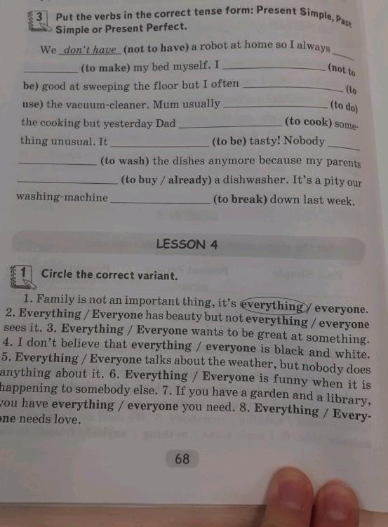 make, don’t, use, does, cooked, was, washes, already bought, broke