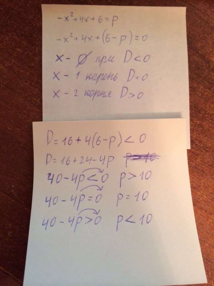 при каких значениях ...р...уравнения -х^2+4х+6=р: