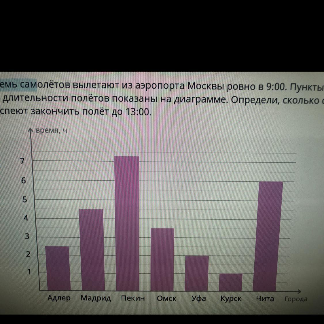 Семь самолётов вылетают из аэропорта Москвы ровно в 9:00. Пункты назначения