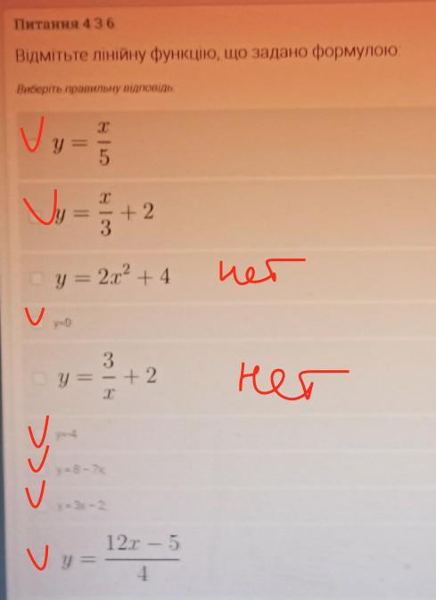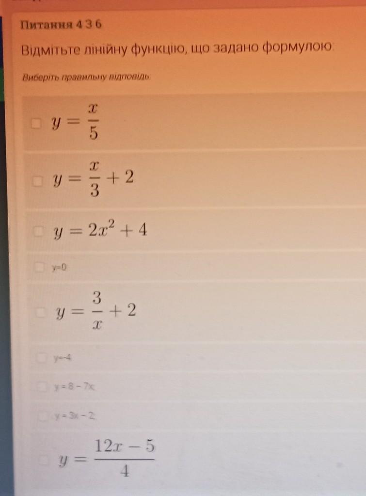 ОТМЕТИТЕ ЛИНИЙНУЮ функцию, заданную формулой