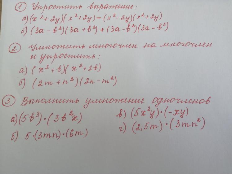 б) (3a-b²)(3a+b²)+(3a-b²)(3a-b²) = 9a²-b⁴+(3a-b²)² = 9a²-b⁴+9a²-6ab²+b⁴= 18a²-6ab²
