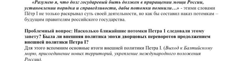 Потомки Петра 1 следовали почти во всё указаниям Петра 1.Да,внешняя политика была такой же как и при Петре 1.