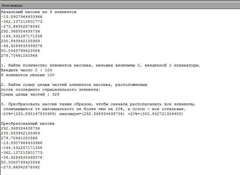 2) сумма целых честей элементов массива расположенных после последнего отрицательного элемента С#, С++