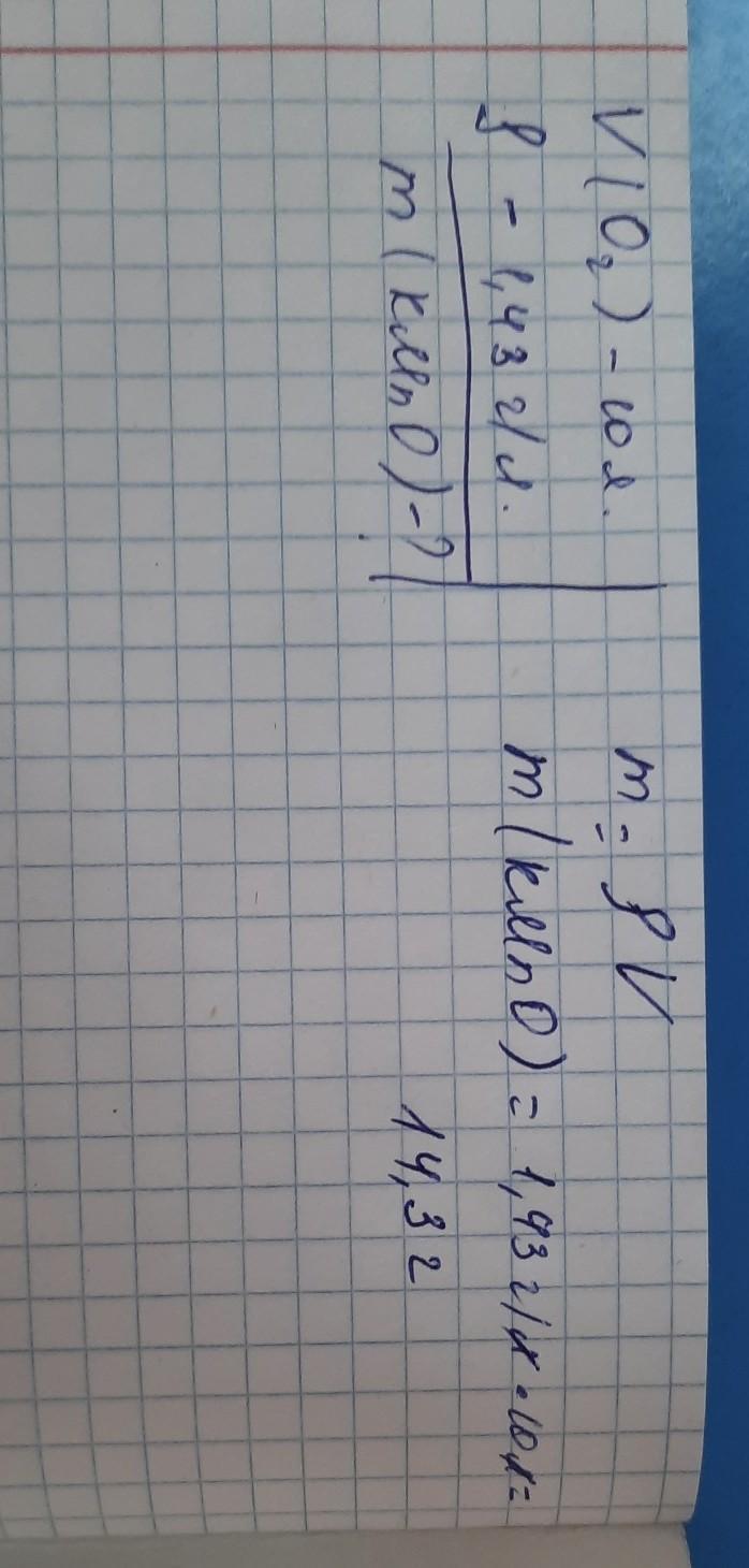 ната калия (KMnO ) и вычислите массу перманганата калия, необхо димого для получения 10 л кислорода (плотность кислорода 1,43 г/л).