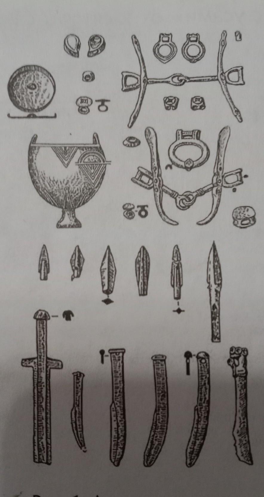 Ответ:На рисунке :кинжалы ,зеркала , конское снаряжение, остроконечники .