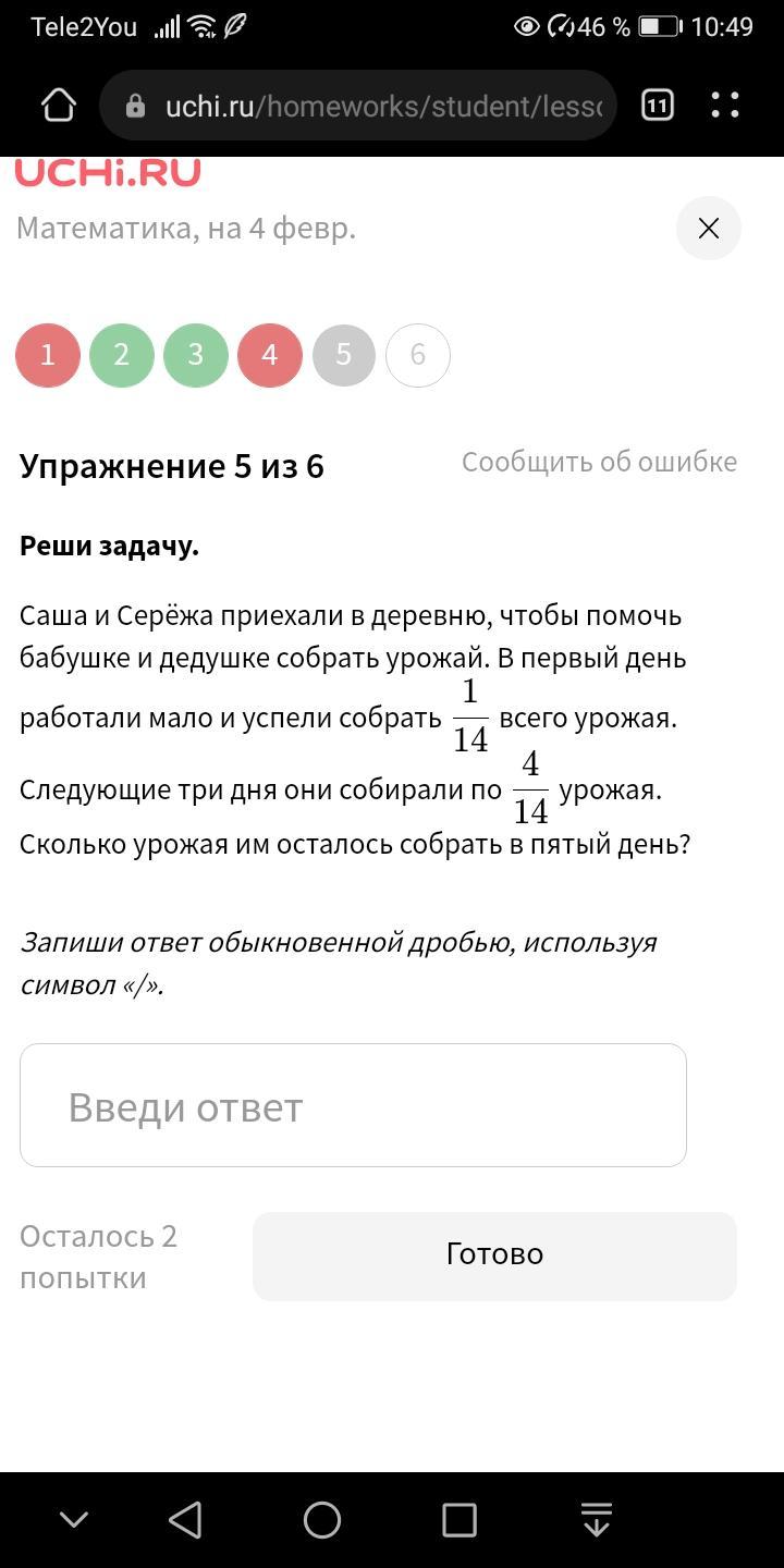 1) 4/14 *3 = 12/14 = - убрали за три дня