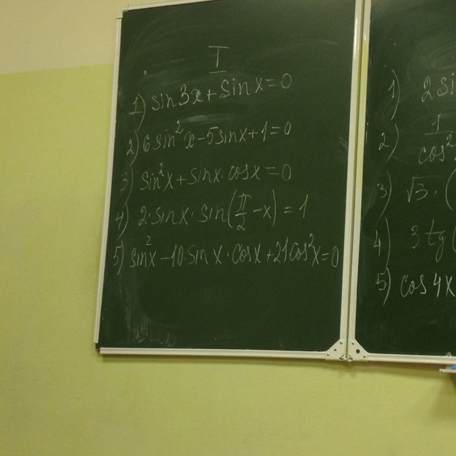 ЧЕТВЕРТОЕ:Возможно так: 2sinx*sin(п/2-x)=2cosx*sinx; 2cosx*sinx=1; x=п/4+пn.