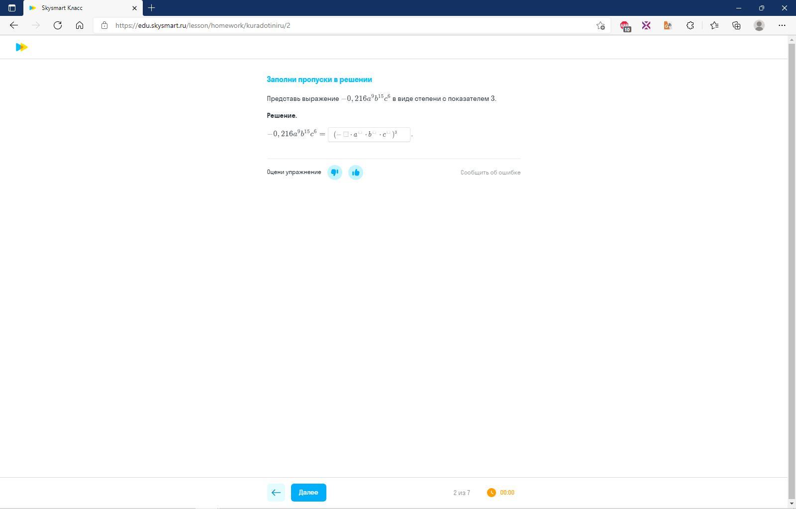 Ответ(-0.6a^3b^5c^2)^3