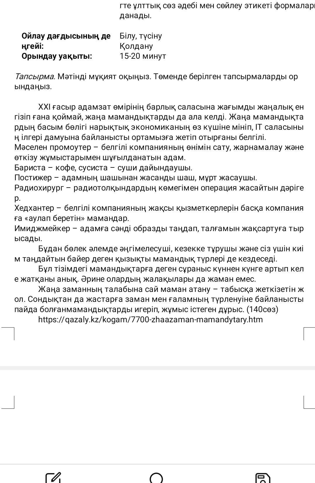 әтіннің негізгі идеясына сәйкес келетін нұсқаны анықтаңыз. А. Болашақ мамандықтар туралы Ә. Қызықты мамандық түрлері Б. ІТ саласының дамуы.В Сұранысқа ие мамандықтар