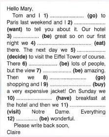 1)went 2)wanted 3)was 4)ate 5) 6) decided 7)were 8) went 9)bought 10) had 11)visited 12)were