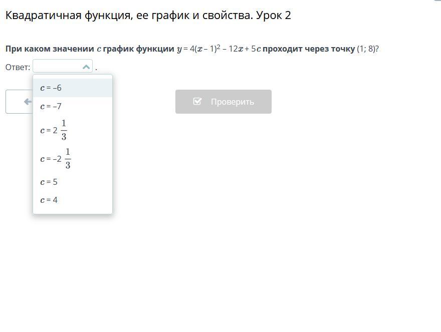 помогите пожайлуста При каком значении c график функции y = 4(x – 1)2 – 12x + 5c проходит через точку (1; 8)?
